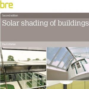 - Design manual for solar shading (BRE Trust Report) and two BRE Information Papers on retrofitting solar shading and control of solar shading – brebookshop.com